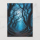 Una caricatura de un bosque con árboles encofrados y una iluminación azul espeluznante, capturando una misteriosa y atmosférica escena de los bosques.