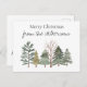 Esta postal de vacaciones de Navidades, sencilla y elegante, presenta un diseño de acuarela acogedor. Una imagen de un bosque invernal se coloca en el fondo, con varios árboles salpicados de nieve. En la parte superior se imprimen un nombre de familia de ejemplo y un saludo de Navidades. Puede personalizar la postal para incluir su propio nombre o texto personalizado.