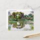 Postal de arte fino con el cuadro, Arcos floridos Rosas, Giverny (1913) de Claude Monet (1840-1926). Un artista impresionista francés. Una vida quieta de un jardín florido con un arco de rosas rojas al lado de un estanque con nenúfares de agua rosada en primer plano.