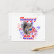 Celebra el 4 de julio con una ardilla linda sosteniendo una bandera y las palabras rojo, blanco y azul que dicen ¡Feliz 4!