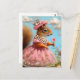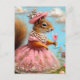 Una ardilla divertida con un vestido rosa y perlas sosteniendo una bebida de arte generado por IA