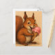 Una ardilla adorable sostiene un cono de helado de fresa que se derrite