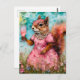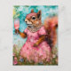 Una ardilla divertida con un vestido rosa y perlas sosteniendo una bebida de arte generado por IA