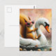 Postal Ardilla Divertida en Flotador de Cisne