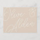 Diseñada para coincidir con nuestras invitaciones a bodas de Script Watermark, esta elegante tarjeta postal RSVP basada en tipografía es perfecta para RSVPs tradicionales de correo. El diseño incluye letras de guiones sobredimensionadas en la parte superior, en tonos de tonos para un efecto de marca de agua. Personalice con la fecha deseada de RSVP y el personalizado acepte y rechace la redacción de las letras clásicas de serif alineadas en la parte inferior derecha. El color arena es una elegante mezcla de tonos tierra, con letras de crema pálida y barro de terracota sobre un suave fondo de arena beige.