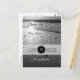 Una hermosa tarjeta postal de "Save The Date" en blanco y negro con un aspecto moderno. Cuenta con una foto en blanco y negro con enfoque selectivo de la salida del sol brillando en la arena y las olas a lo largo de Folly Beach en Carolina del Sur, Estados Unidos. Ideal para cualquier destino de playa. También coincide con la colección de decoraciones de ceremonia y recepción y favores de la boda Glassy Sand. Para personalizar, haga clic en el botón personalizar. ¡Felicidades!
