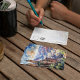 Esta postal presenta un retrato acuático del Gran Cañón en Arizona.