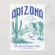 Celebre la belleza de Arizona con esta minimalista postal de estilo vintage. Con el apodo del estado "El estado del Gran Cañón" y fecha establecida "Este. 1912", este diseño exhibe un encantador ilustracion de un corredor de carreteras que cae entre icónicos cactus. Un recuerdo perfecto para los amantes del desierto del suroeste o para cualquiera que recoja arte de Estados Unidos.