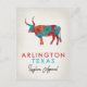 Brillante y colorido diseño Arlington Texas que está aprobado al 100% de Longhorn. Colores cálidos de rojo, naranja, turquesa y agua en un estilo acuático sobre un fondo neutro.
