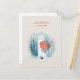 Cute visón/armiño blanco rodeado de flores azules y naranjas pensando en ti tarjeta. Personaliza con tu propio mensaje en la parte frontal y cambia tu dirección en la parte posterior.