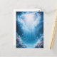 Este impresionante diseño presenta un santuario submarino sereno y mágico donde el azul profundo del océano se encuentra con una luz celestial brillante. Representada en un estilo de acuarela exuberante y texturizada, la escena captura un resplandoriente estallido de sol que rompe la superficie del agua, proyectando poderosos haces de luz hacia las profundidades. El lecho marino está adornado con intrincados grupos de formaciones de coral azul pálido y lavanda suave, que aparecen como plumas de humo congeladas contra el agua turquesa oscura. Pequeños peces blancos brillantes se lanzan a través de los haces de luz, mientras que burbujas brillantes y estrellas distantes parecen mezclarse en el agua, creando una atmósfera soñadora y pacífica. La estética general es tranquila, majestuosa y llena de maravillas naturales, lo que la convierte en una excelente opción para los entusiastas del buceo y los amantes de la vida marina artística. Esta tarjeta postal de arrecife de coral elegante es una excelente opción para enviar una nota tranquilizadora de "pensando en ti" o un saludo significativo a un amigo que encuentra la paz junto al mar. Puedes elegir usar esta tarjeta artística para una invitación de boda con tema de playa o para celebrar un logro profesional con un toque de elegancia de aguas profundas para tus colegas. También hace una hermosa pieza decorativa para una pared de baño o un complemento elegante para un diario de viaje como un pequeño token