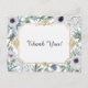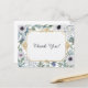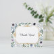 This elegant thank you card blends soft botanical watercolor elements with a striking Art Deco–inspired gold frame. Delicate white anemones, airy blue thistles, and muted greenery create a lush border that surrounds a clean, open center. The geometric gold detailing adds structure and vintage glamour, while the gentle color palette keeps the design fresh and timeless. Perfect for weddings, bridal showers, or sophisticated stationery collections, this design offers a graceful balance of nature and classic elegance.