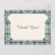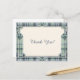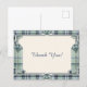 This elegant postcard design combines the timeless charm of classic tartan with the refined structure of Art Deco styling. A soft green and blue plaid border is framed by symmetrical geometric detailing and signature fan motifs, creating a sophisticated architectural look. The design draws inward to a warm ivory center with a subtle texture, providing a clean, balanced space for the “Thank You!” message to stand out beautifully. The contrast between the structured border and the open center creates a polished, high-end aesthetic that feels both vintage-inspired and modern. Perfect for weddings, bridal showers, or refined everyday correspondence, this design offers a graceful and memorable way to express appreciation.