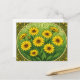Bright yellow daisies on a green background, in an art nouveau inspired frame makes a darling and cheerful postcard. Has a very retro-modern look that is both fun and elegant.