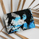 Una pintura blanco y negro azul colorida abstracta del chica. Un diseño único en fondo negro. La idea perfecta del regalo de los arty para cualquier persona en cualquier ocasión.
