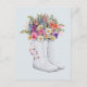 Postal Arte con botas de goma con ramo de flores