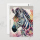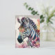 Postcard cuenta con vivos cuadros acuáticos de una cebra entre plantas y flores. Marco botánico para un majestuoso animal salvaje de África.
