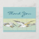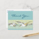 Una tarjeta de agradecimiento editable con letras de escritura y arte de baldosas vintage de gaviotas volando sobre un mar océano tranquilo, en tonos pastel sobre un fondo azul verdoso oceánico en la parte delantera, y su dirección de devolución personalizada en la parte posterior. Arte restaurado y reproducido a partir de un patrón de baldosas antiguo.