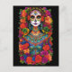 Postal Arte de calavera de azúcar - Mujer hermosa en flor