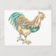 Ilustración colorida de un gallo inspirada en tela bordada vintage.