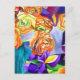 Postal Arte de la acuarela de Ranunculus e Iris