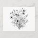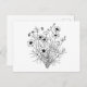 Postal Arte de la Línea de Flores Silvestres en Blanco Ne
