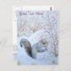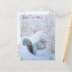 La hermosa escena de nieve de invierno en esta tarjeta postal muestra una pequeña ardilla gris linda sentada entre los arbustos y hierbas de bosque cubiertas de nieve, ha encontrado un arbusto cubierto de bayas rojas de invierno y está disfrutando de un peinado en su hallazgo afortunado. Este bonito cuadro de nieve de ardilla es muy evocador de los fríos meses de invierno en la campiña inglesa, pero su cortesía se puede apreciar durante todo el año. La imagen de la vida salvaje de invierno de esta pequeña y hambrienta ardilla gris hace una postal original de arte para navidades pequeños y estoy seguro de que esta linda imagen traerá sonrisas a amigos y familiares o a quien sea que le envíes esta postal. Esta postal de navidades personalizable puede ser personalizada para que usted envíe su propio texto para las personas especiales en su vida. La foto de esta postal original es una producida de mi acuarela original titulada "Un banquete de invierno".
