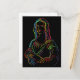 Postal Arte de línea abstracta de la Mona Lisa de neón