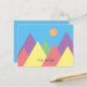 arte montañés mínimo simple mcm estilo postal de mediados de siglo, con formas de corte simple en color rosa morado sobre el cielo azul con colores brillantes de sol naranja editar fácilmente el tipo de letra del texto, Puede TRANSFERIR este DISEÑO en otros productos Zazzle y ajustarlo para que se ajuste a la mayoría de los elementos Zazzle.