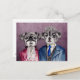 Esta es una pintura acuarela de un pug y una mezcla de perritos de brussel y de cangrejos de cangrejo con ropa vintage. El pug lleva puesto un vestido morado oscuro o magenta con una bufanda de encaje y perlas. El griffon de brussel lleva puesto un traje de chaleco azul oscuro y gris. También lleva un monóculo.