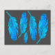 Diseño de plumas de plumas azules en acuarela. Diseño artístico de boho en gris y blu.e