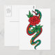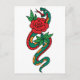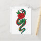 Postal Arte de tatuaje de rosa roja con serpiente enrolla