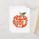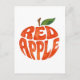 El diseño incluye las palabras "Manzana Roja", que se organizan creativamente en forma de manzana con una hoja verde en la parte superior. La tipografía es audaz y colorida, dando una impresión alegre y vibrante.