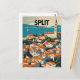 Tarjeta postal de arte de viaje nostálgico de Croacia dividida.