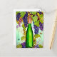Postal incluye botella de vino verde acuarela con racimos de uva morada, viñas de uva y mariposas pequeñas. Imagen de arte del vino digital creada con software de IA