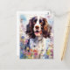 Obra de arte en acuarela colorida de un English Springer Spaniel sentado en un campo de flores de primavera.
