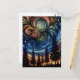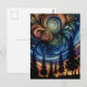 Postal Arte etéreo místico con árboles y cielo nocturno