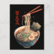 Este diseño presenta un ilustracion deliciosamente detallado de un tradicional bol de ramen, con fideos, huevos y varios ingredientes. Los palillos están levantando algunos fideos, añadiendo un toque dinámico a la imagen. Los caracteres japoneses le dan un toque auténtico