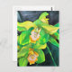 De un original cuadro de arte en acuarela de Sacha Grossel de flores de orquídeas verdes y amarillas en un estilo botánico pálido. Esta obra de arte original de estilo pop floral es vibrante y colorida. verde limón y amarillo limón sobre un fondo verde oscuro texturado.