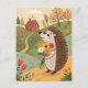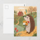 Postal Arte popular de erizo con flores
