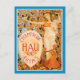 Hermosa mujer Art Nouveau anunciando champán con hojas de otoño en el fondo.