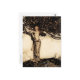 Postal inspirada en uno de los ilustraciones de Arthur Rackham a Das Rheingold de Wagner, Freya (1909). La imagen muestra a la diosa Freya parada bajo un manzano, buscando uno de los frutos. Sus dos gatos están a su lado.