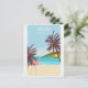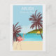 A cualquiera le encantaría recibir esta postal de viaje con un ilustracion retro de la playa Flamingo en Aruba.