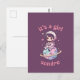 Esta postal está diseñada para aquellos que esperan un chica. Este diseño es un gran regalo para los fiestas de revelación de sexo para bebés. El diseño consiste en un lindo ilustracion al estilo kawaii de un astronauta chica sentado en un pequeño planeta acompañado por el texto "es un chica".