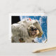 ¡Deseo usted estaba aquí…! Esta foto imponente es de una misión espacial (STS 121) volada por descubrimiento del transbordador espacial. Los astronautas están caminando en espacio para ayudar a reparar la estación espacial internacional. ¡Reflexión asombrosa en la placa frontal del casco! y tierra azul hermosa del planeta en la distancia.