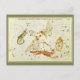 Astronomía de ilustracion vintage y carta de estrellas celestiales antiguas con cinco constelaciones: Lacerta, Cycnus, Lyra, Vulpecula y Anser. Lacerta es una de las 88 modernas constelaciones definidas por la Unión Astronómica Internacional. Pequeña y tenue constelación, fue creada en 1687 por el astrónomo Johannes Hevelius. Sus estrellas más brillantes forman una forma "W" similar a la de Cassiopeia, y por lo tanto a veces se le llama "Pequeña Cassiopeia". Se encuentra entre Cygnus, Cassiopeia y Andromeda, en la esfera celeste del norte. La parte norte está en la Vía Láctea. Cygnus (latín para cisne) es una constelación del norte. Es una de las constelaciones más reconocibles del verano y el otoño del norte y tiene un asterismo prominente conocido como la Cruz del Norte (a diferencia de la Cruz del Sur). Cygnus fue una de las 48 constelaciones listadas por el astrónomo Tolomeo del siglo II, y sigue siendo una de las 88 modernas constelaciones. La constelación de Lyra, su nombre deriva de la lira, un instrumento musical de cuerdas muy conocido por su uso en la antigüedad clásica y más tarde. Lyra fue una de las 48 constelaciones listadas por el astrónomo Tolomeo del siglo II, y sigue siendo una de las 88 modernas constelaciones reconocidas por la Unión Astronómica Internacional hoy en día. Lyra es una pequeña constelación, pero su estrella principal, Vega, es una de las más brillantes del cielo. Desde el norte, Lyra está bordeada por el Draco Draco, el héroe griego Hércules, el zorro Vulpecula y Cygnus el cisne. Vulpecula (latín para "pequeño zorro") es una tenue constelación en el cielo del norte. Fue creado en el siglo XVII y se encuentra en el centro del Triángulo de Verano (un asterismo compuesto por las brillantes estrellas Deneb, Vega y Altair). En esta constelación no hay estrellas más brillantes que la cuarta magnitud. La estrella más brillante de Vulpecula es α Vulpeculae, un gigante rojo de 4,44 m de magnitud a una distancia de 297 años luz. La estrella es un binario óptico (separación de 413,7") que se puede dividir usando binoculares. La estrella también lleva el nombre tradicional de Anser, que se refiere a la gallina que el zorro pequeño tiene en sus mandíbulas.