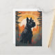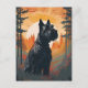 Una colorida obra de arte de un terrero escocés en el bosque durante la puesta de sol