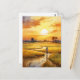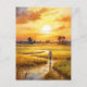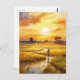 Postal Atardecer dorado sobre campos de arroz rurales