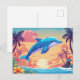 Postal Atardecer en isla tropical y delfín