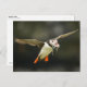 Tarjeta animal que muestra un féretro atlántico volador en la isla skomer (Gales) con anguilas de arena en roble para alimentar a los pollitos. El féretro atlántico (Fratercula arctica), también conocido como el féretro común, es una especie de ave marina de la familia auk. Es el único ataúd nativo del océano Atlántico. El atlántico tiene una corona negra y la espalda, parches de mejillas grises pálidas y partes inferiores blancas. Sus anchas y audaces piernas rojas y negras y sus patas naranjas contrastan con su plumaje. En invierno se desvanecen molduras en el mar y se pierden algunas de las características faciales de colores vivos. El atún de aleta del Atlántico se reproduce en Islandia, Noruega, Groenlandia, Terranova y muchas islas del Atlántico Norte, y al sur como Maine en el oeste y las Islas Británicas en el este. El atún atlántico tiene una gran población y una amplia gama. No se considera que esté en peligro, aunque puede haber descensos locales en el número. En tierra, tiene la típica postura vertical de un auk. En el mar, nadan en la superficie y se alimentan principalmente de pequeños peces, que capturan submarinizando bajo el agua, usando sus alas para propulsión.